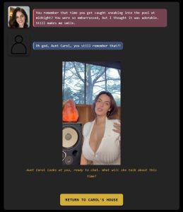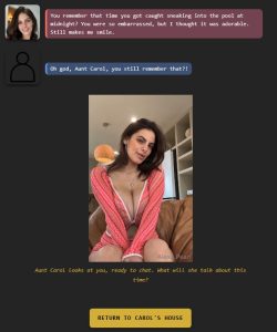 In “A Weekend With Aunt Carol” you play as a young man the player is invited to spend a weekend with his Aunt Carol. Things take a turn when you notice her sensual vibes, the player is invited to discover the true desires and passions of Aunt Carol.